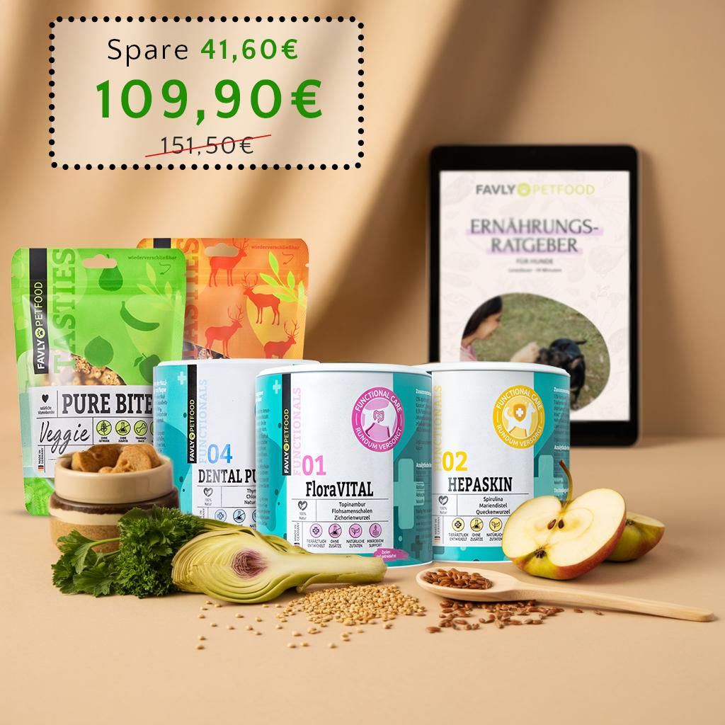 Juckreiz, Zahnbelag & Maulgeruch, Verdauungsprobleme – viele Hunde kämpfen mit diesen Herausforderungen. Doch statt zehn verschiedene Produkte zu kaufen, brauchst Du nur eines: Unser Fit & Vital Bundle vereint die drei wichtigsten Gesundheitssäulen in einem durchdachten Set.