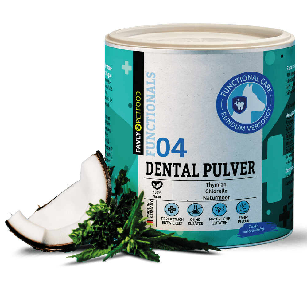 Unser DENTAL Pulver ist ideal, um die Zahngesundheit Deines Hundes zu unterstützen. Es ersetzt jedoch keine medizinische Zahnreinigung und regelmäßige tierärztliche Kontrollen sind weiterhin notwendig. Unser Pulver kann als Teil einer umfassenden Zahnpflege verwendet werden, um Zahnprobleme zu reduzieren und die allgemeine Maulgesundheit zu fördern.