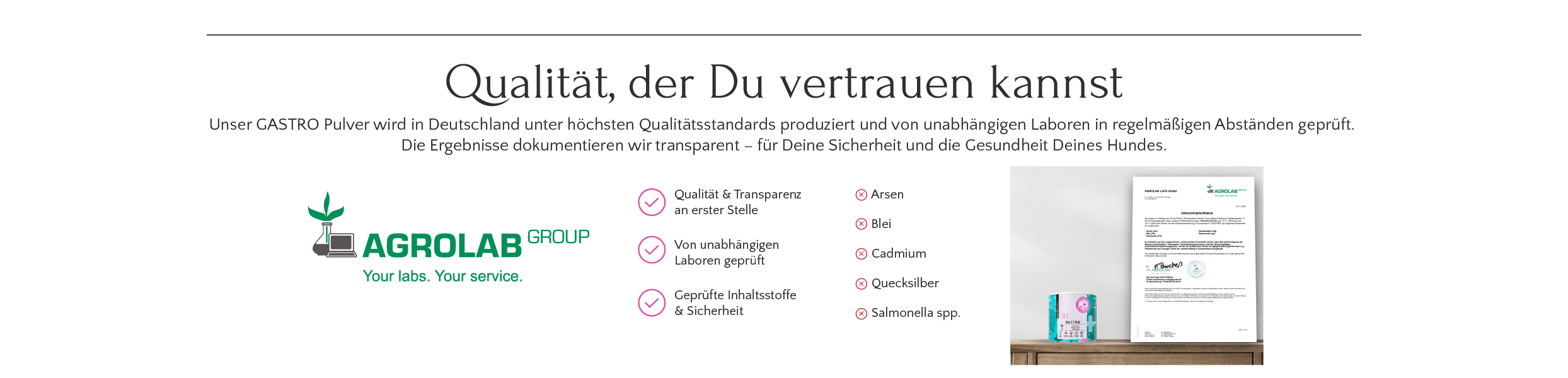 Die Ergebnisse dokumentieren wir transparent – für Deine Sicherheit und die Gesundheit Deines Hundes.