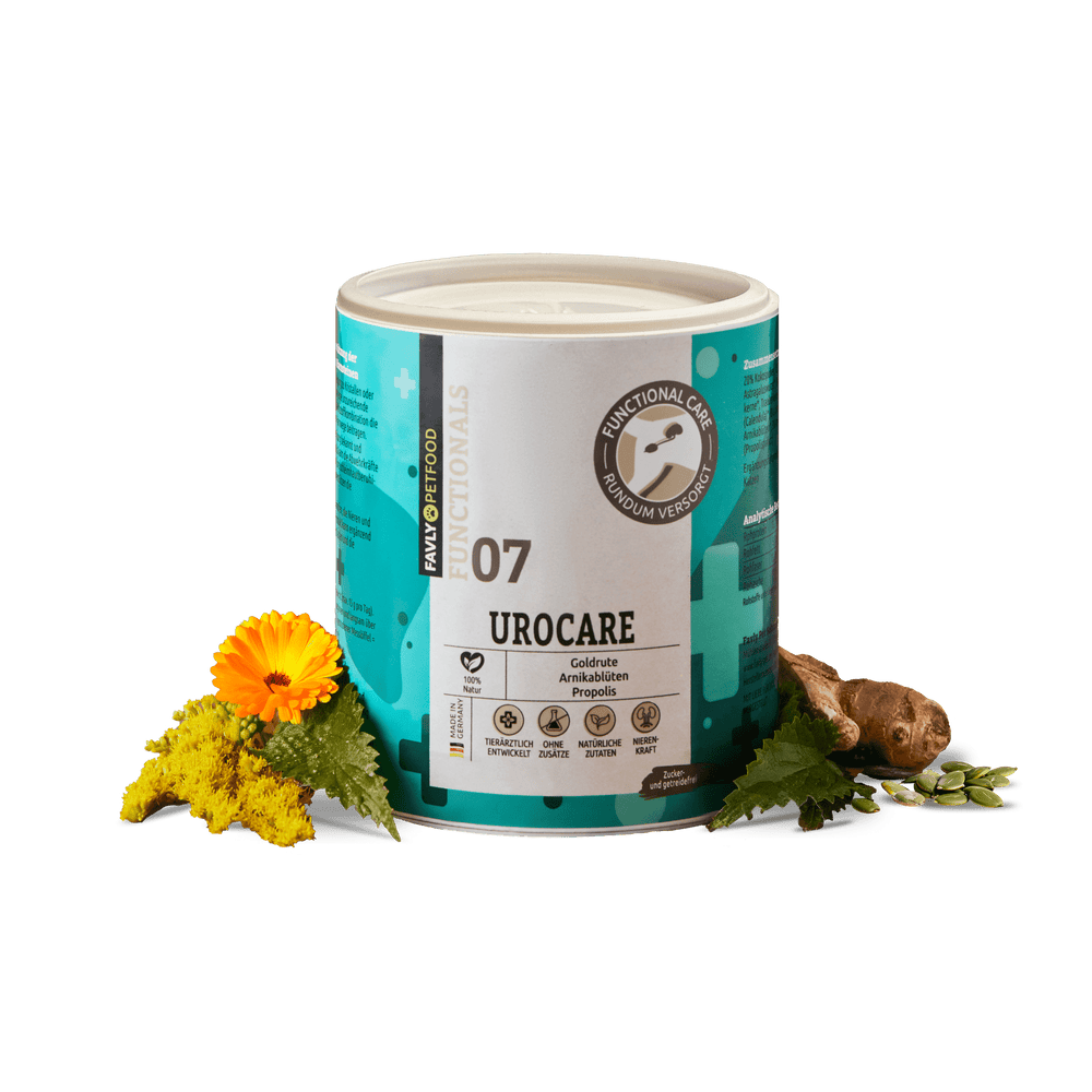 Unser UROCARE Pulver ist ideal, um die Blasen- und Nierengesundheit Deines Hundes zu unterstützen. Es ersetzt jedoch keine tierärztliche Behandlung bei akuten Harnwegsinfekten oder Blasensteinen – regelmäßige tierärztliche Kontrollen sind weiterhin notwendig. Unser Pulver kann als Teil einer umfassenden Vorsorge verwendet werden, um Harnwegsprobleme zu reduzieren und die allgemeine Blasengesundheit und Nierenaktivität zu fördern.